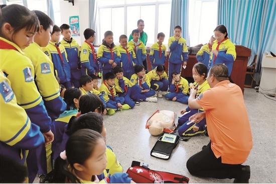 活动中,新华交响乐团为师生们带来“新声乡韵·乡村音乐会”。音乐会曲目丰富多样,当熟悉的《我和我的祖国》旋律响起,全场师生自发起立合唱,嘹亮的歌声回荡校园。同时,新华保险还在施秉县多所学校组织开展了“超能急救班”健康知识普及课堂,专业讲师采用“理论讲解+实操演练”的组合授课模式,为小学生系统讲解心肺复苏的核心原理及重要性、AED设备规范使用方法、海姆立克急救法操作要领以及突发状况的应急处置技巧等。孩子们积极参与实操演练,加强了对急救技能的理解与掌握,增强了风险应变能力。新华