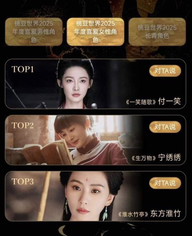 在这里也是清晰的标注前三的位置有李沁饰演的付一笑,杨幂饰演的宁绣绣,刘诗诗出演的东方淮竹。